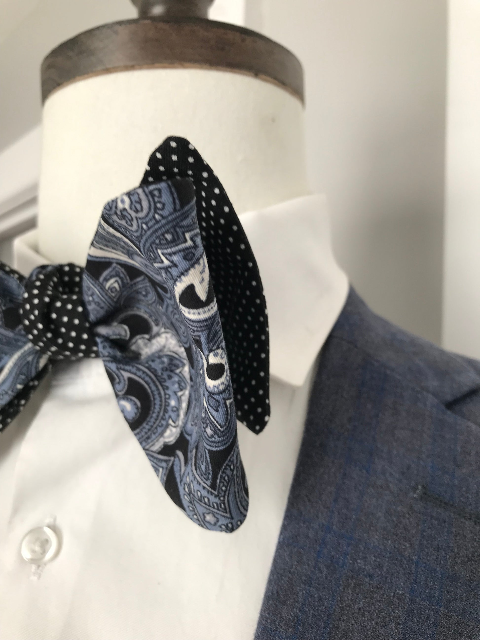 Black dot and mixed black and blue paisley print reversible Bowtie set (FATBOW)
