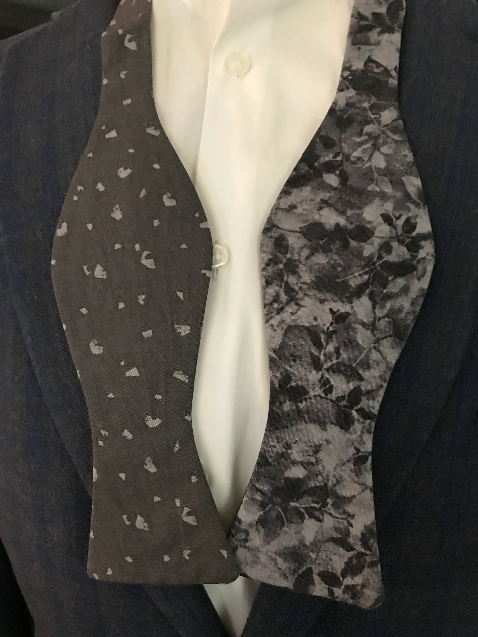 This traditional dark grey and grey print reversible bowtie set is handcrafted with suiting cotton, adding a touch of luxury to any black suit. Made with expert skill and attention to detail, this set offers a sleek and sophisticated look for any formal occasion. Elevate your style with this high-quality bowtie set.